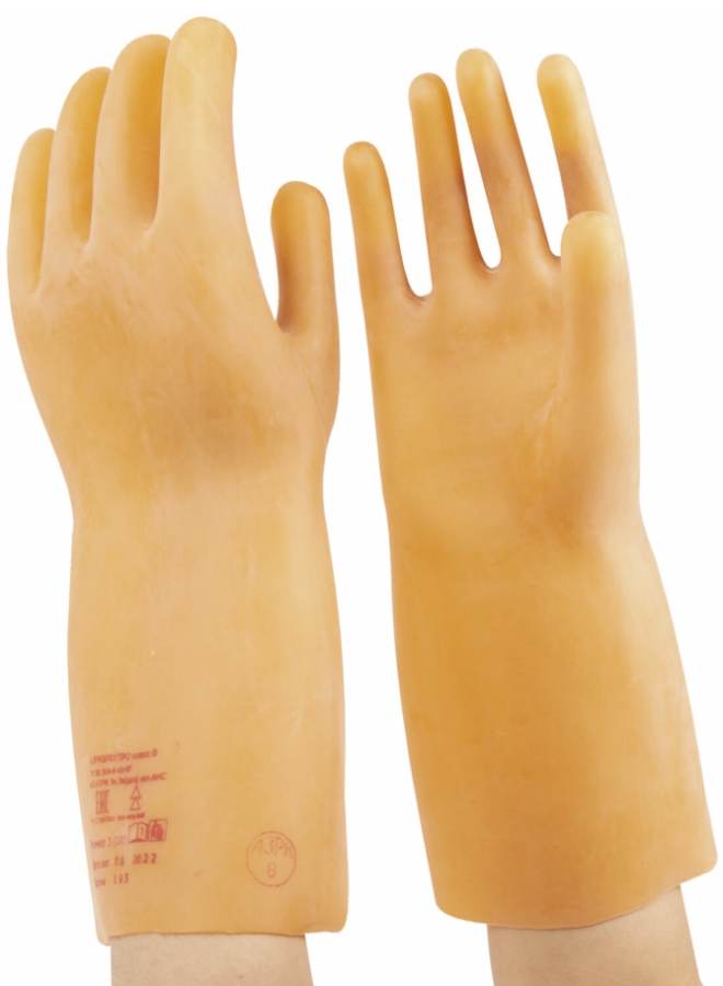 Перчатки бесшовные анатомические для основной защиты рук от воздействия электрического тока при работе с электроустановками напряжением до 500 в.