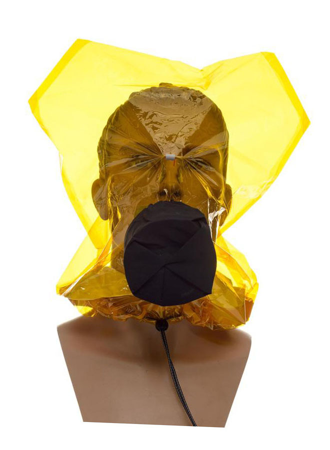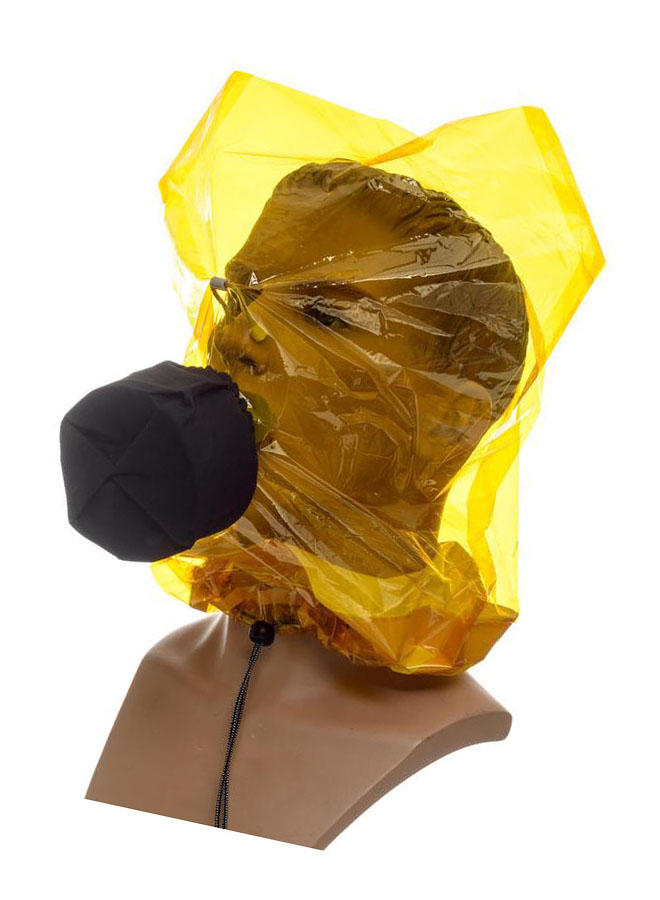 Модель: самоспасатель Феникс из негорючего материала без ограничения обзора со встроенным одноразовым фильтром с загубником. Особенность: вдох-выдох через рот, нос перекрывается комплектным носовым зажимом, малый вес и объем изделия.