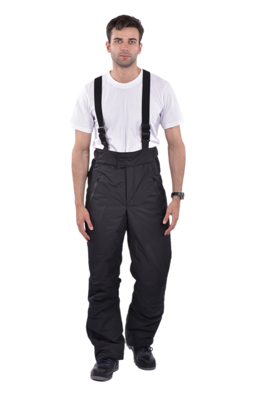 ➠ Брюки утеплённые: притачной расширенный пояс, бретели на застежке фастекс. Два боковых кармана на молнии. Внизу боковых швов обработаны разрезы, застегиваются на тесьму «молния» и закрываются клапаном на липучке.