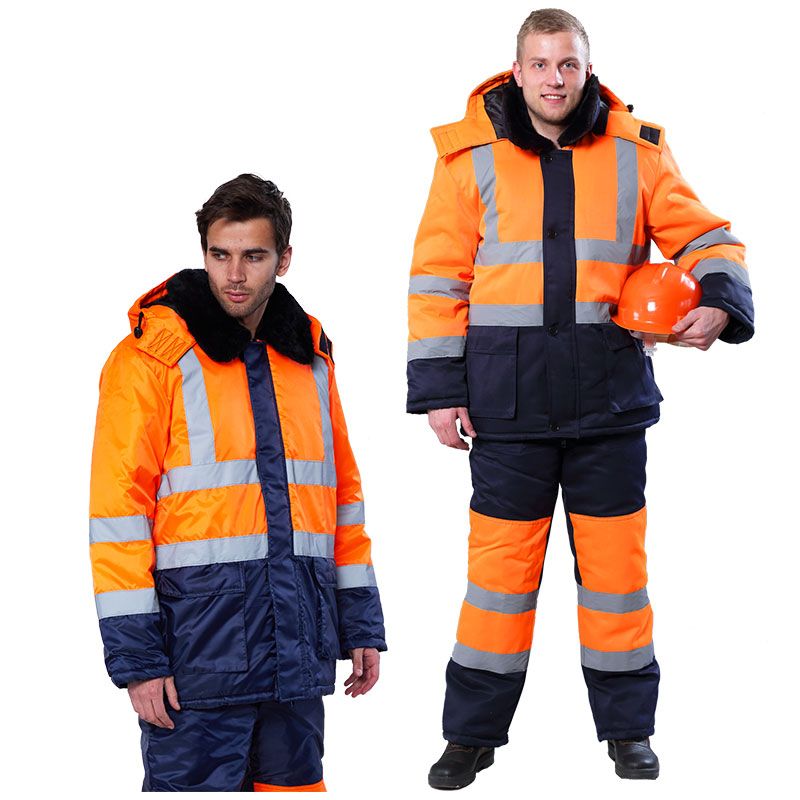 Доступен выбор зимних и летних комплектов со светоотражающими элементами. Костюмы для работы в холодное время года снабжены удобными съемными капюшонами, теплой синтепоновой прокладкой, меховым отложным воротником, трикотажными манжетами на рукавах. Плотность синтепона зависит от назначения одежды: в куртках составляет 450 г/м2, в полукомбинезонах – 300 г/м2.